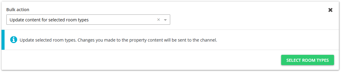 Updating content for multiple room types is only available for channels that support updates at the room level (such as Booking.com, Expedia).