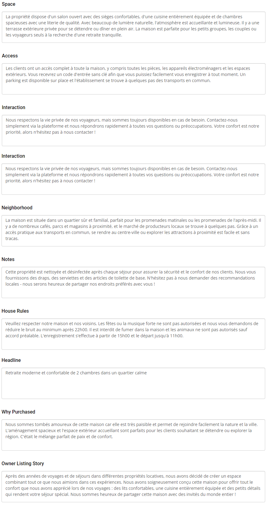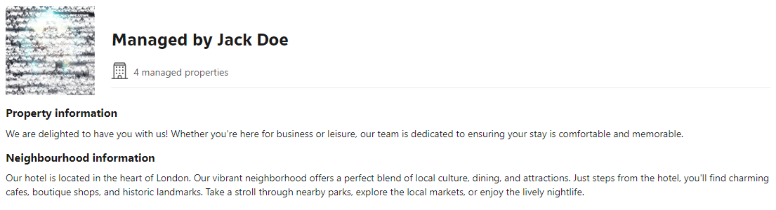 | Neighborhood | Max. 2000 characters | <neighborhood_info> | Neighbourhood information |