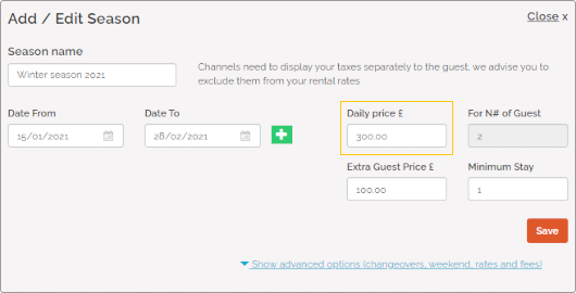 Homes & Villas by Marriott Bonvoy requires prices for additional guests to be fixed, so only one value can be sent to Homes & Villas by Marriott Bonvoy: either one from Extra guest price or Occupancy pricing. In case you have both of them specified, Rentals United will verify which pricing is the most beneficial and will send the highest price from all. Also, if your Extra guest prices or Occupancy pricing differ across multiple seasons, Rentals United will take all the seasons into account and send the highest price from all.