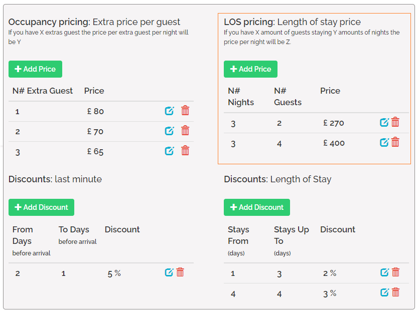 Last-minute discounts - it applies if the guest books a stay between 14 and 0 days before arrival