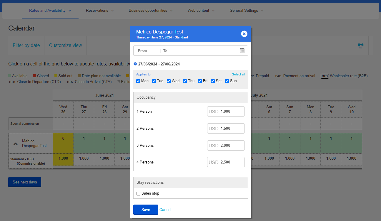 Vous pouvez ajuster la façon dont nous envoyons Tarif LOS à Despegar. Voir Tarification de base des LDV.