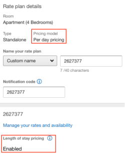 Si Expedia doit utiliser Tarif LOS, le bien doit avoir au moins 30 jours couverts par les prix LOS, par exemple LOS2, LOS3, LOS4, ..., LOS8 = 35 jours et aucun Tarif pour un voyageur supplémentaire n'est défini. Ensuite, le modèle de tarification dans le tableau de bord Expedia sera réglé sur la tarification à la journée avec la tarification à la durée du séjour activée dans Expedia.